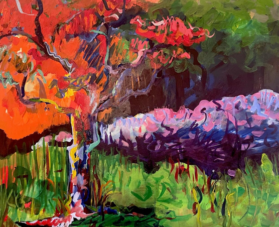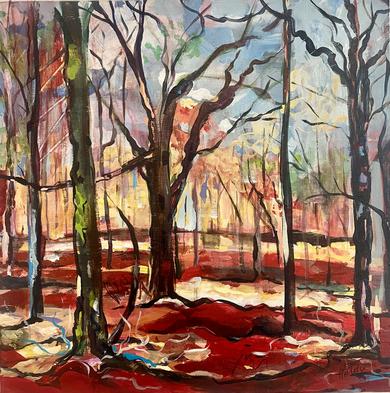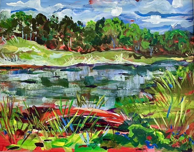 A new series which incorporates vintage quilt pieces from my grandmother with expressive landscapes and scenes from nature. These pieces will be exhibited at Pearl River Glass Studio in Jackson in the fall of 2026.